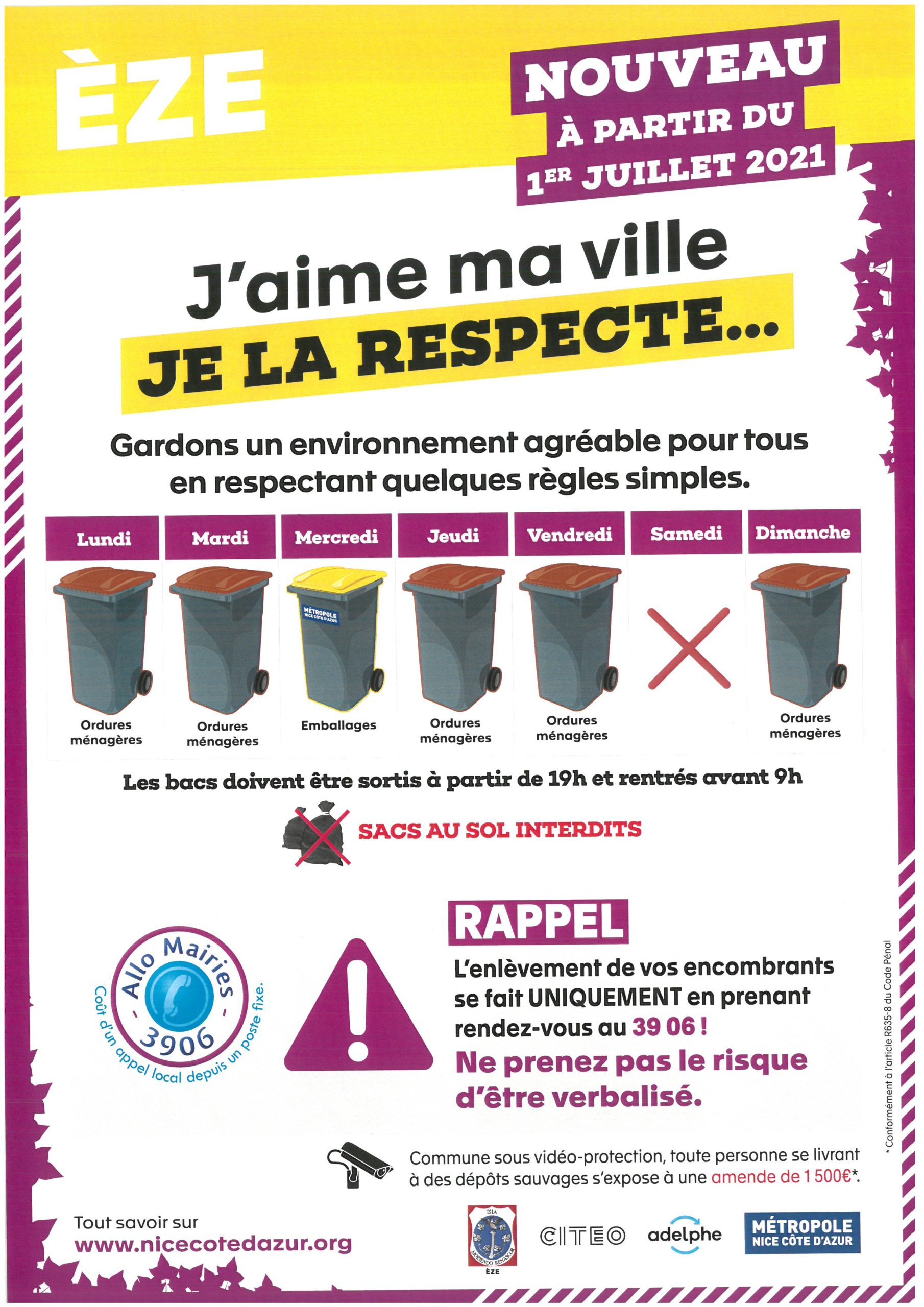 A partir du 1er juillet, le calendrier de collecte des déchets ménagers change. Vous trouverez ci-joint les dates de collecte.